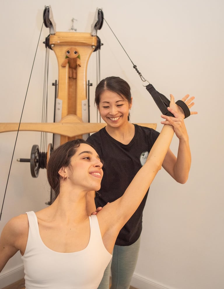 At Yutori, we have 2 Pulley Towers, the ARCHWAY®, and the Jumping Stretching Board, Leg extension, Gyrotoner to offer a variety of exercises and modifications. We work with different breathing patterns as well as rhythm, making it great for coordination and balance. It also has a holistic approach, calming the nervous system.